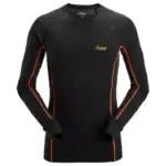 Deze functionele top voor de basislaag is ontworpen voor comfort en optimale prestaties in koude omstandigheden en heeft een dubbelgebreide constructie. De buitenkant is gemaakt van 100% mulesing-vrije merino wol, die uitzonderlijke warmte biedt. De binnenkant, gemaakt van synthetische vezels, voert vocht effectief van de huid weg zonder jeuk te veroorzaken. De top is voorzien van decoratieve platte naden om schuren te minimaliseren, manchetten met duimgrepen voor extra comfort en het Snickers Workwear-logo.