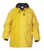 Regenjas 80 cm – Ritssluiting met flap en drukknopen – Verstelbare elastische mouwen met drukknopen – 2 voorzakken met klep – Vaste capuchon – Mesh polyester binnenvoering – 210 grams, 100% polyester laminaat.
